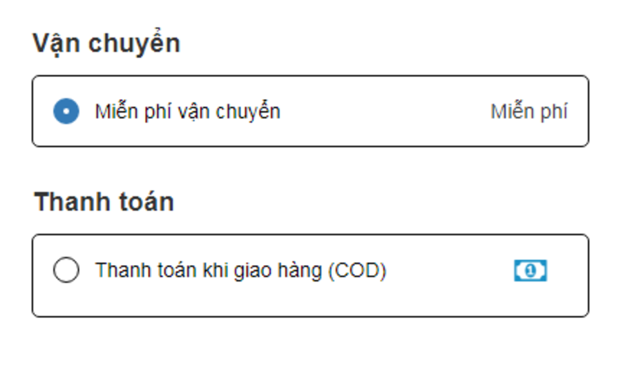 Lựa chọn phương thức thanh toán: