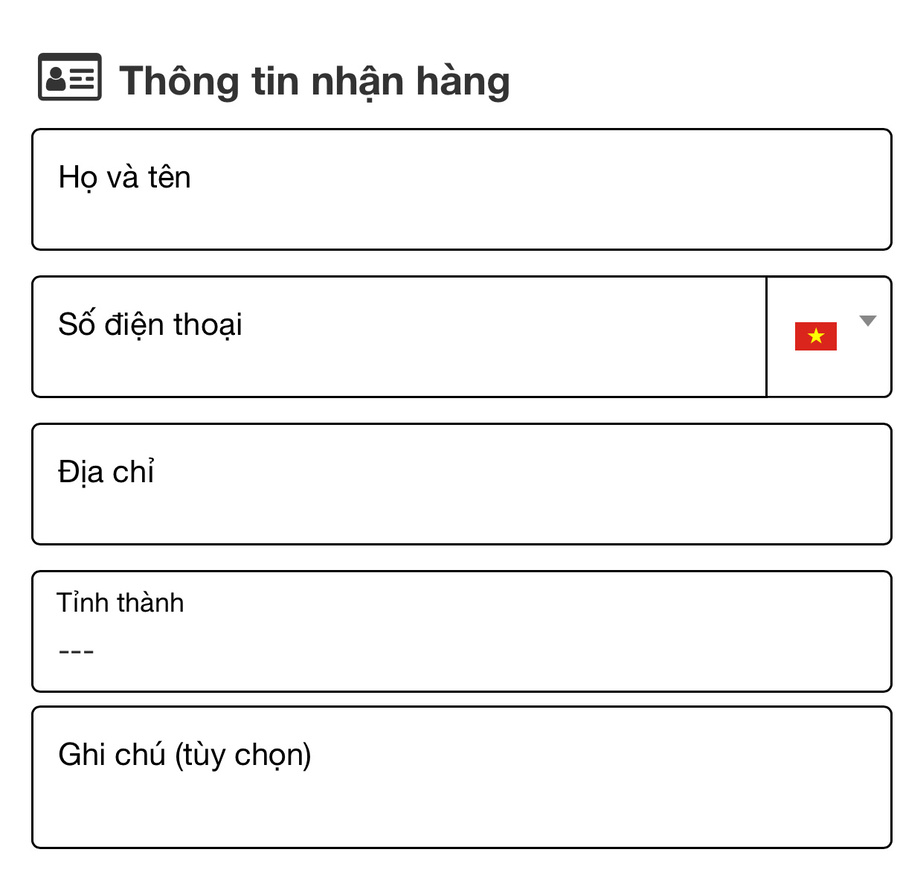 Điền đầy đủ thông tin nhận hàng