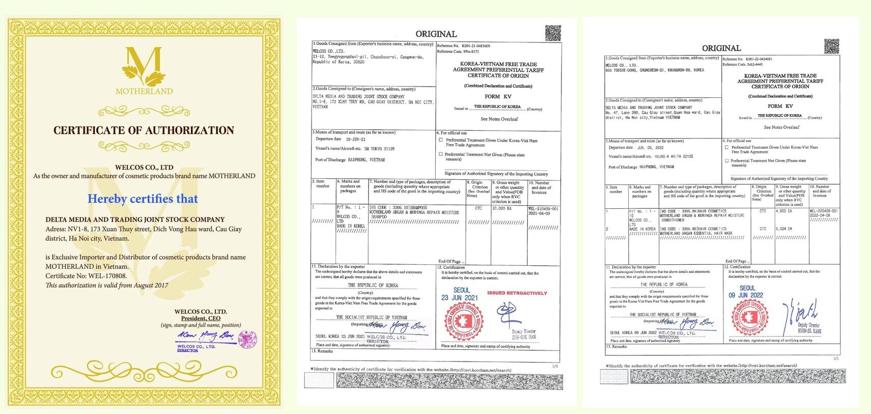 Sản phẩm Motherland được sản xuất tại Hàn Quốc bởi nhà sản xuất Welcos. Nhập khẩu chính hãng theo uỷ quyền của nhà sản xuất & chứng nhận xuất xứ của chính phủ Hàn Quốc